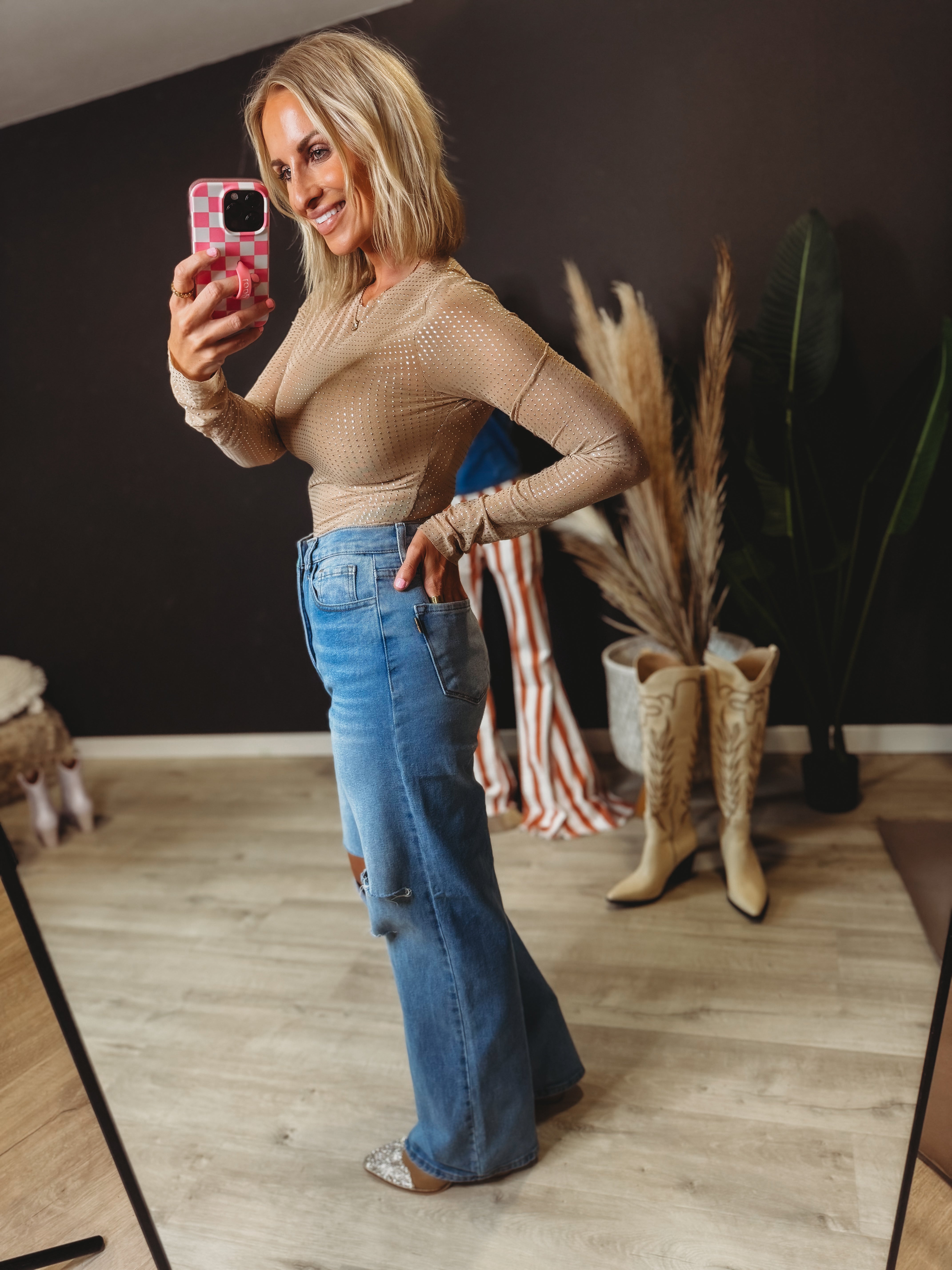 Elevate your denim game with The Slit Knee High Waisted Denim. These jeans feature a high rise for a flattering fit, rigid fabric for a structured look, and a wide leg that elongates your silhouette. Show off your style with a playful twist in these must-have jeans!