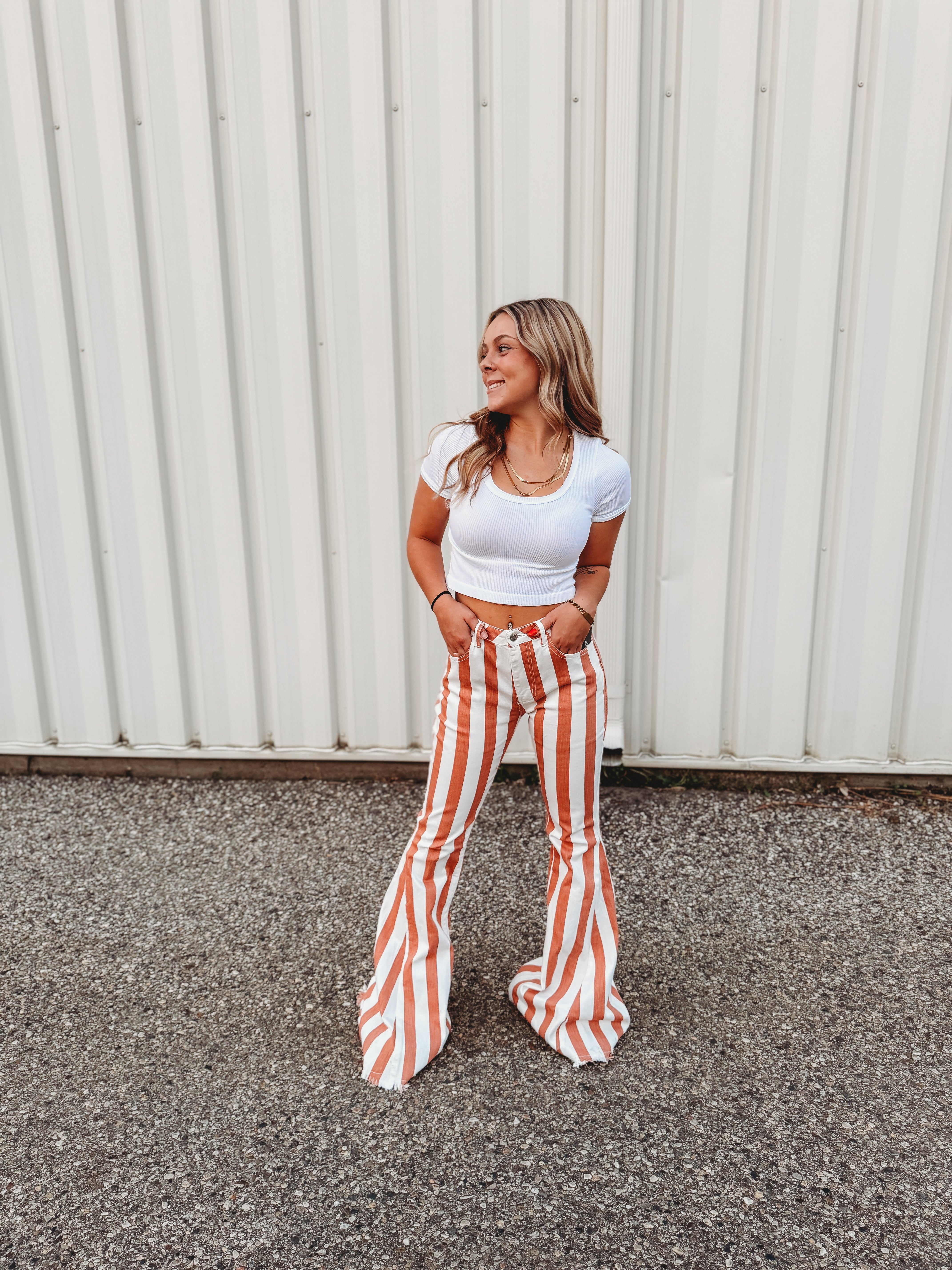 Step into the wild west with the Ashton Striped Flare Denim! These playful jeans bring a fresh twist to classic flare styles, featuring bold stripes that add a dash of fun to your look. Perfect for dancing under the stars or casual days in town, they combine comfort and flair for a truly standout outfit. Embrace your inner cowgirl with a modern edge!