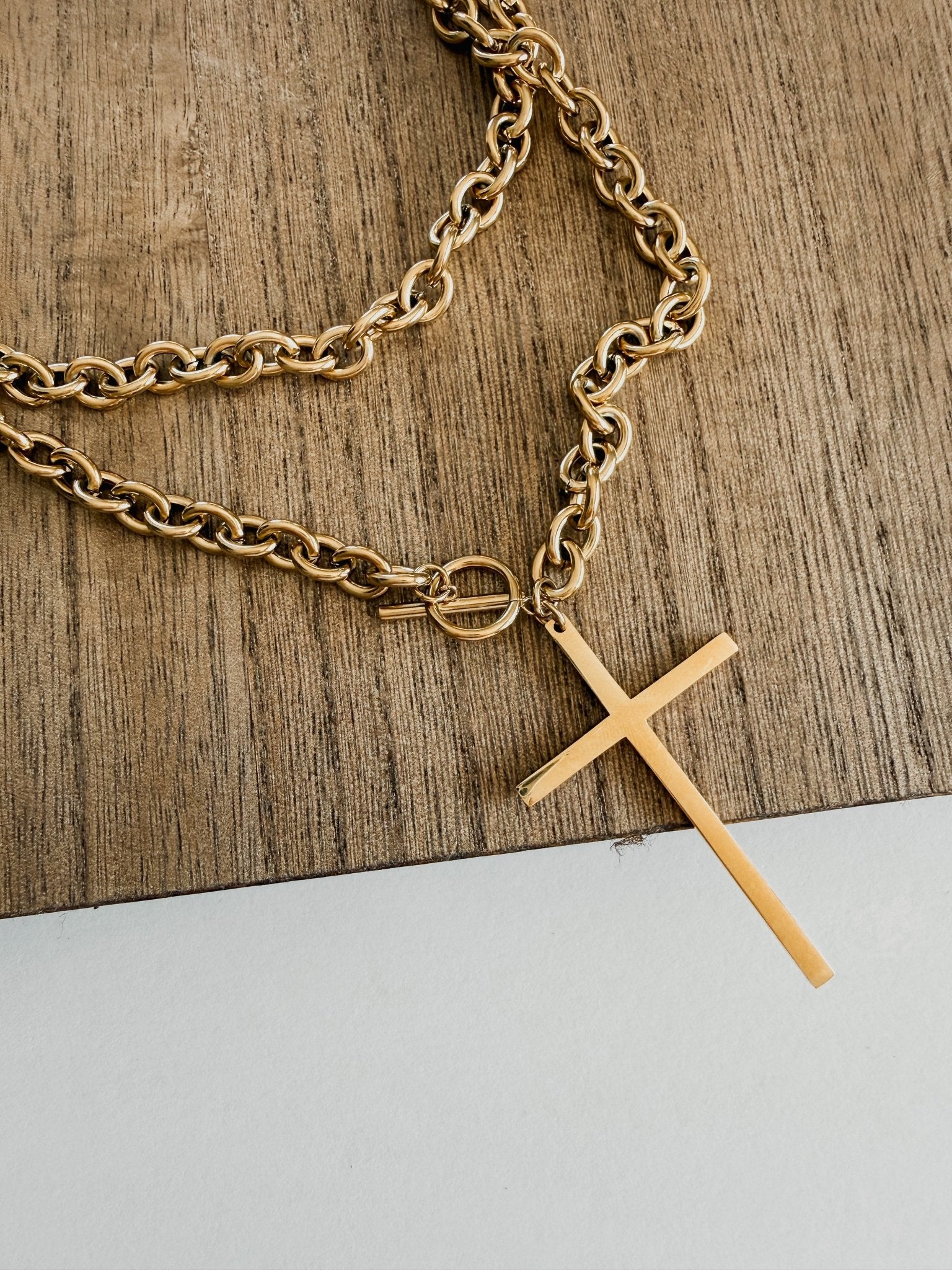 Make a bold statement with the Wren Wrap Around Cross Necklace, where chunky chain meets striking design. This high-quality piece features a substantial gold cross pendant that commands attention, wrapped in luxurious chain detailing. Water-resistant construction keeps your look fresh through any adventure—gym sessions, beach days, or spontaneous outings. Perfect for layering or wearing solo, this necklace blends spiritual symbolism with modern edge. Elevate your everyday style with a piece that's as fearless as you are.