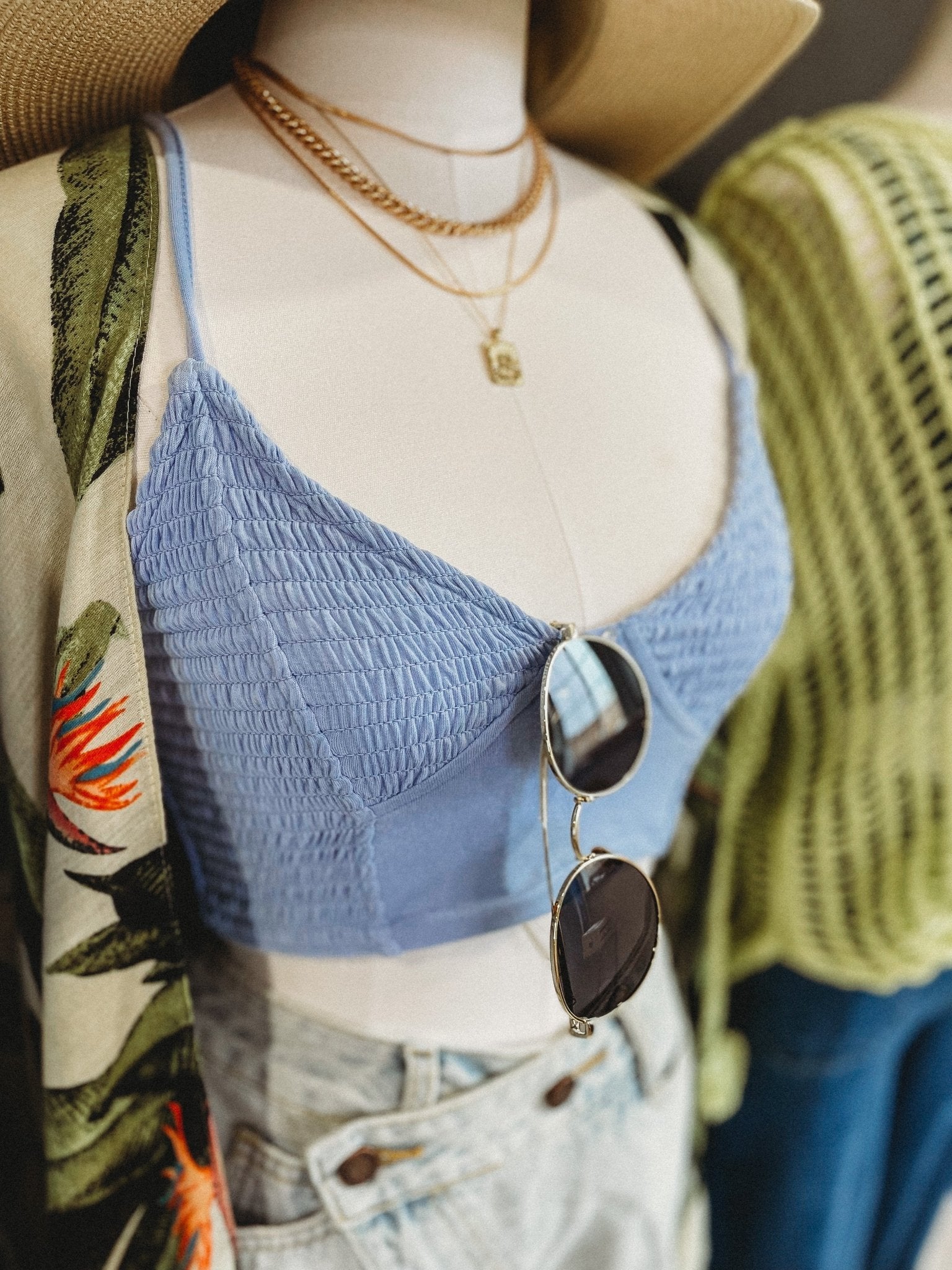 Sometimes you just need a basic bralette that'll keep you comfortable all day long and this gorgeous blue smocked one, fits the description!