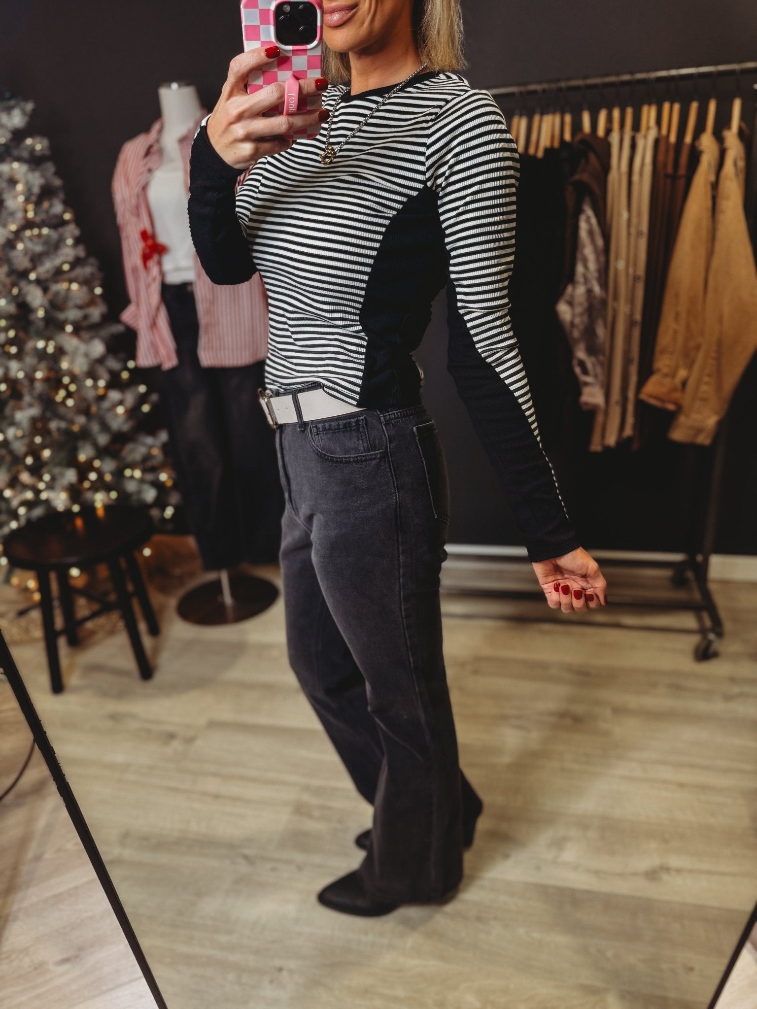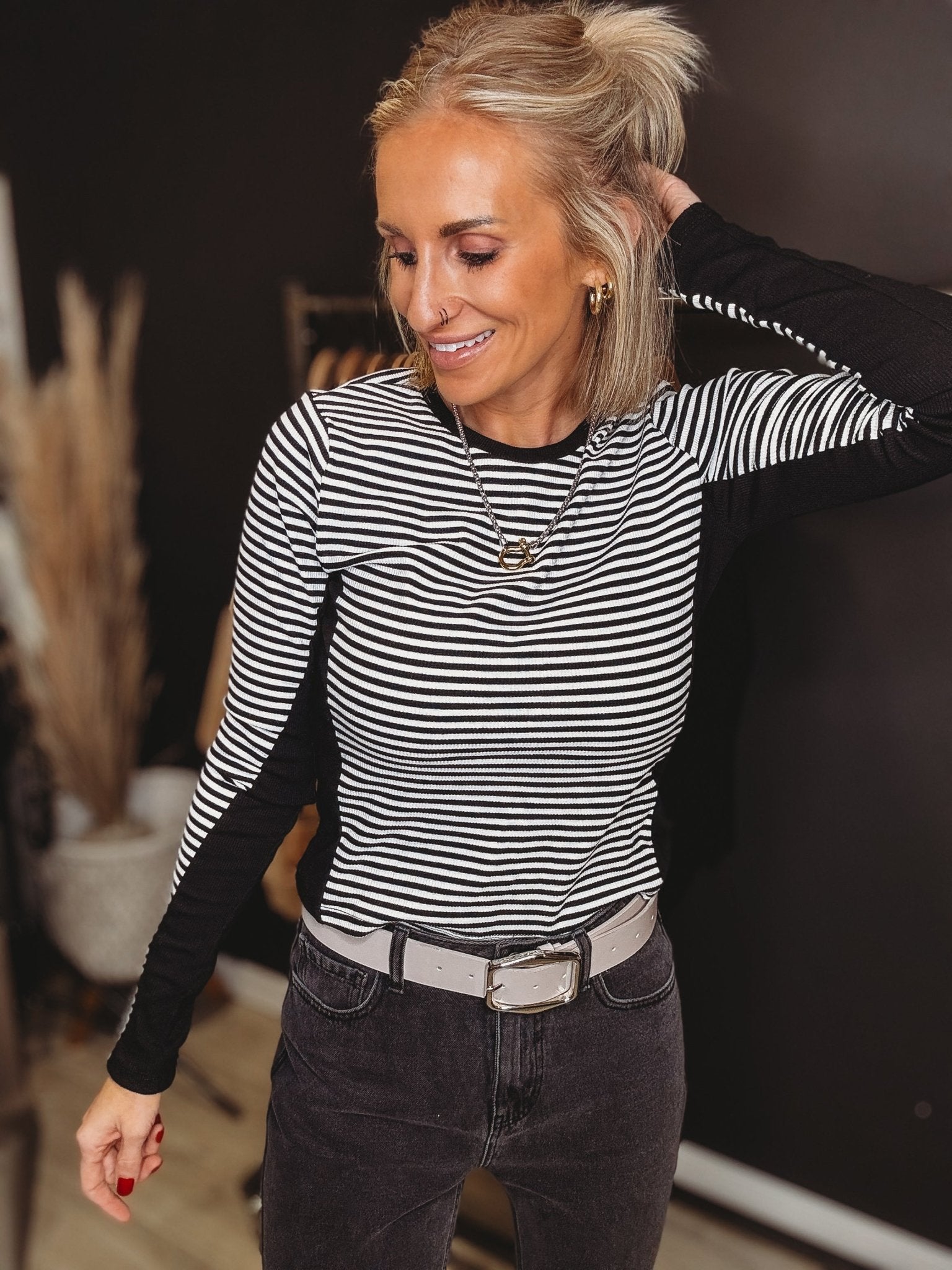 Cole Striped Knit Long Sleeve Top Stripes never go out of style—and this cozy knit top proves it! Layer it, dress it up, or keep it casual; the Cole delivers effortless versatility for any day of the week. Soft, stretchy fabric keeps you comfortable from morning coffee to evening plans. A wardrobe essential that works as hard as you do, minus the stress.
