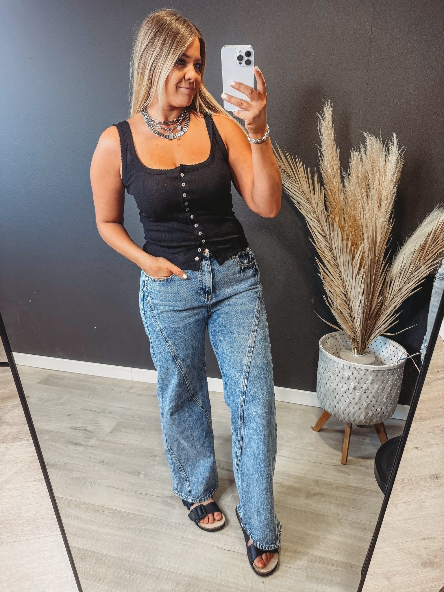 Dottie Button Down Tank Top [ black ]