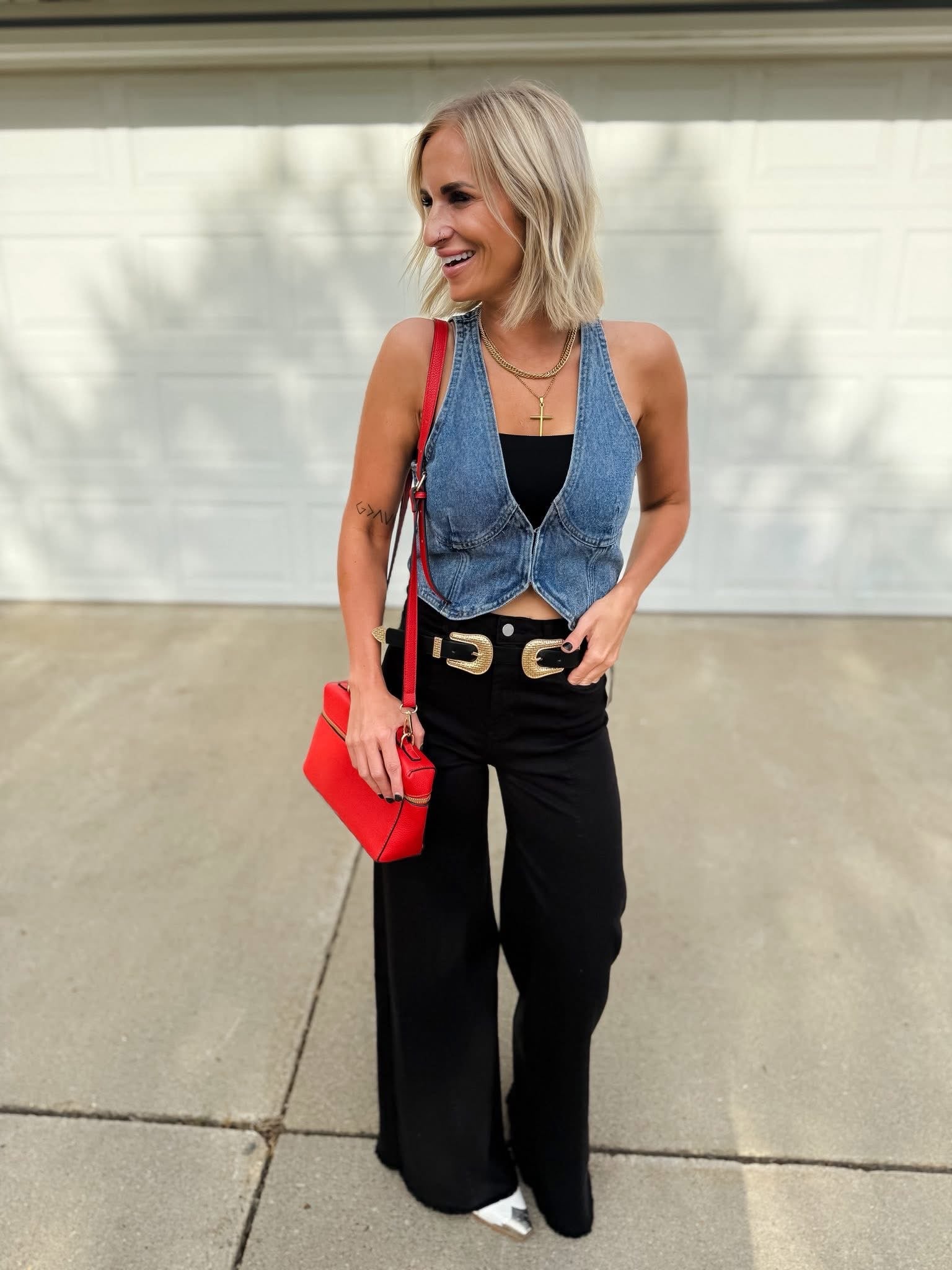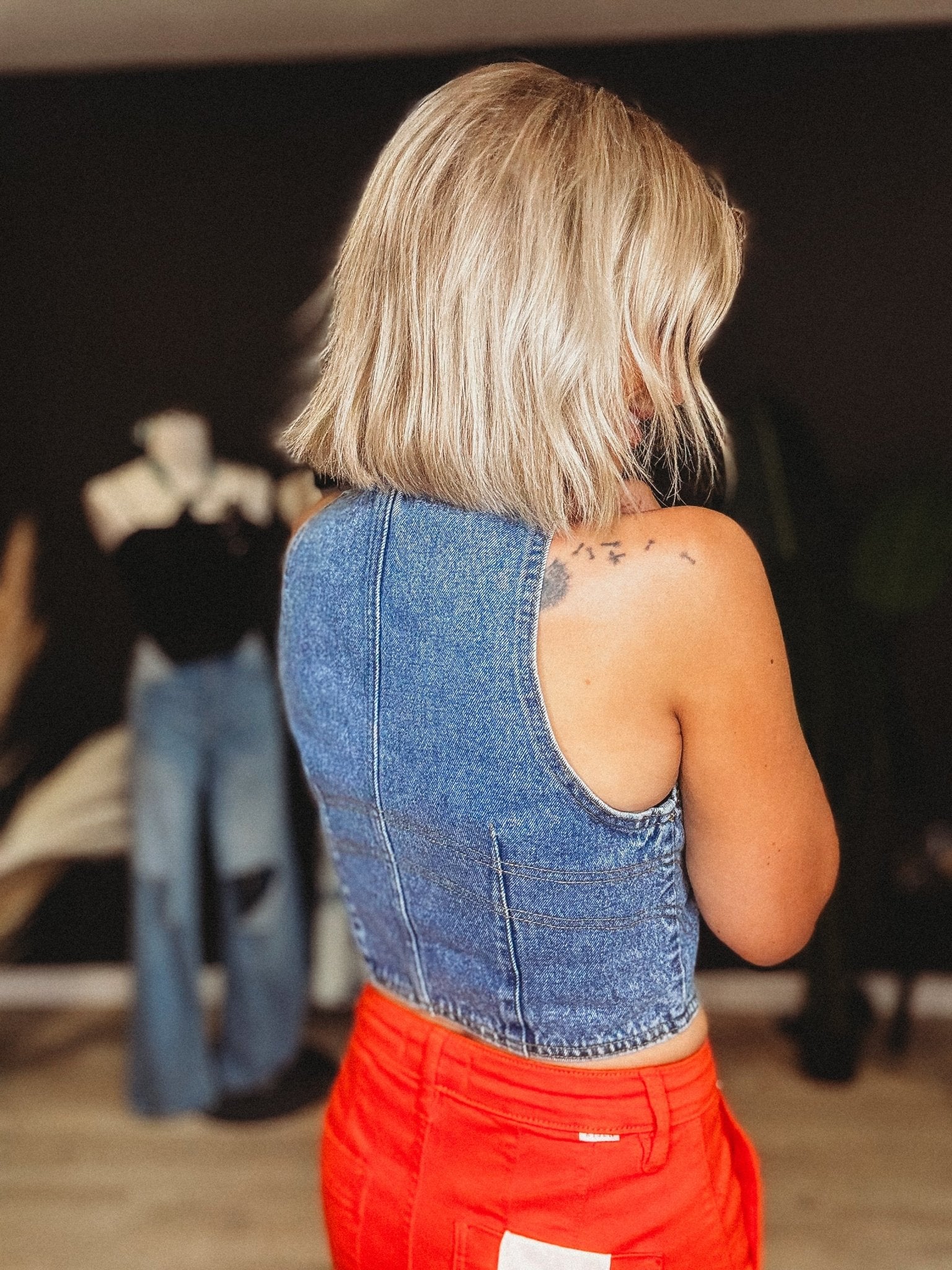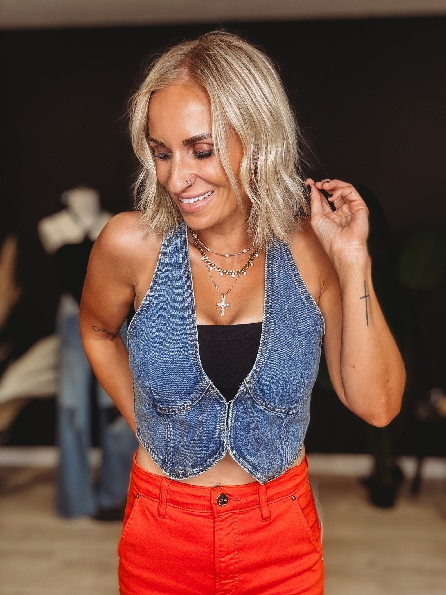 Get ready to steal the spotlight at rodeo nights with the Ella Crop Denim Vest! This playful, cropped denim piece adds a fun, flirty edge to any outfit, perfect for dancing under the stars or cheering on your favorite cowboy. Lightweight and stylish, it’s the best vest to layer over your favorite tees or dresses for that effortless, cool vibe. Saddle up and make every night a rodeo adventure!