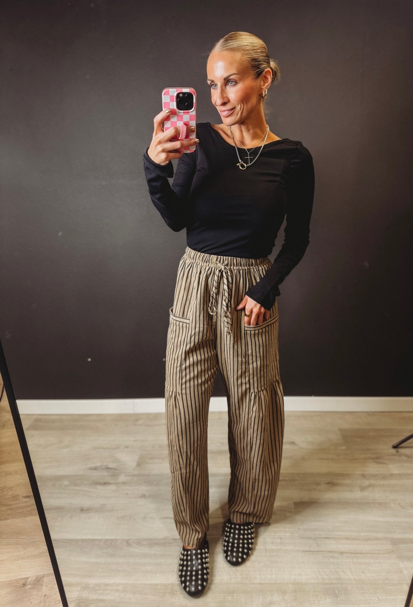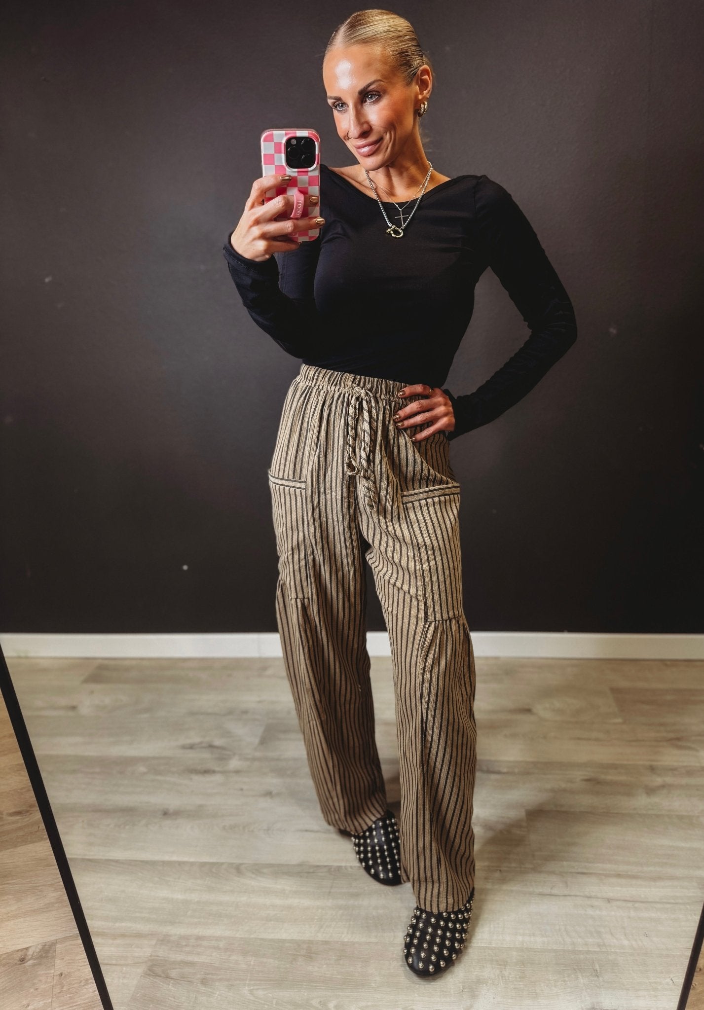 Step into style with the Kade Striped Pants—where bold stripes meet everyday comfort. These trendy bottoms feature functional pockets (because who doesn't love them?) and a relaxed fit that feels as good as it looks. Perfect for casual outings or laid-back vibes, the Kade brings that unique flair to your wardrobe without sacrificing comfort. Dress them up or down and make them your go-to pair for effortless, eye-catching looks.