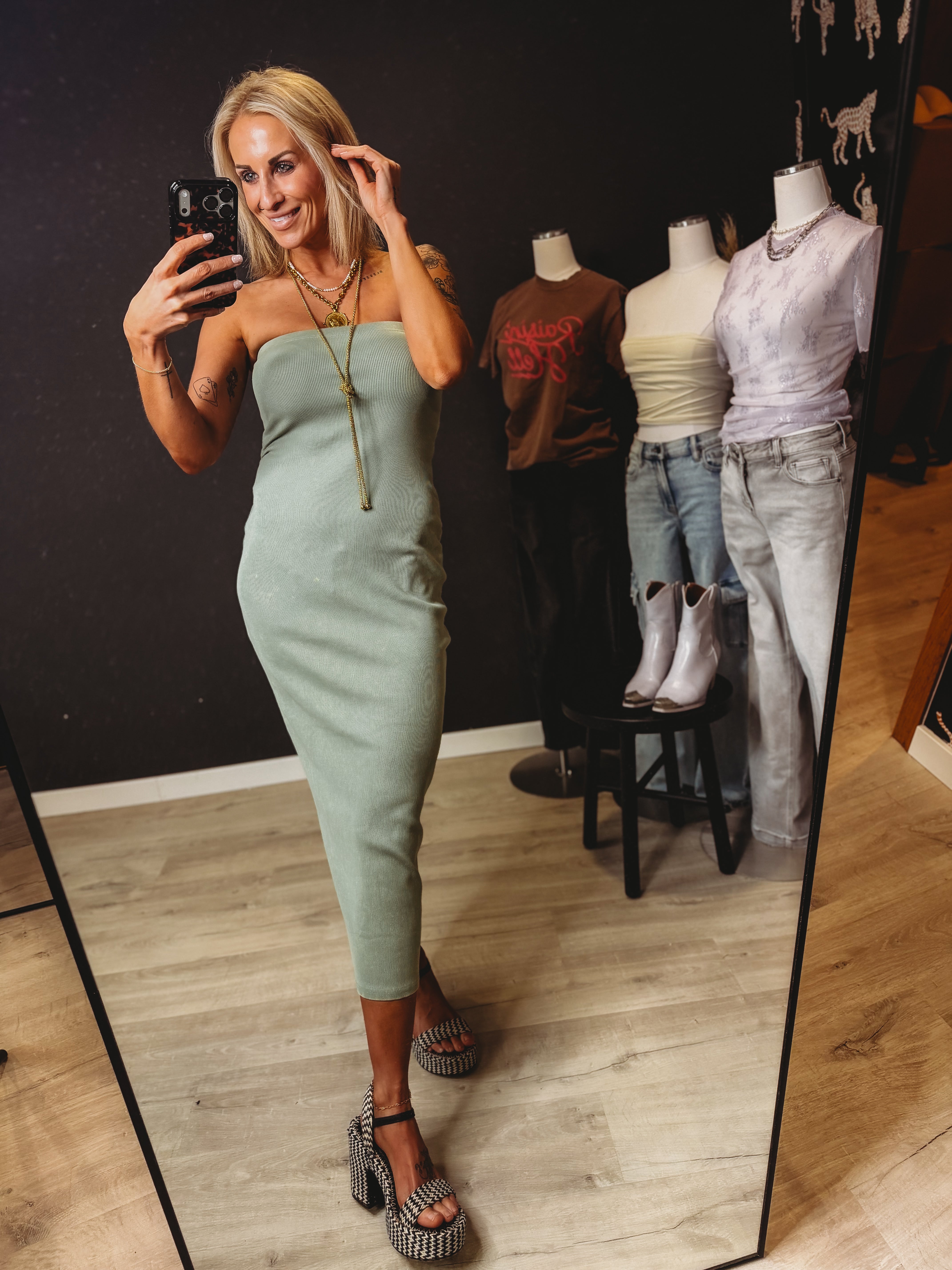 Slip into effortless elegance with the Sylvia Ribbed Tube Top Dress. This chic piece features a sleek ribbed texture and a flattering tube-top silhouette that hugs in all the right places. Perfect for date night, brunch with friends, or whenever you want to feel confident and fabulous. The minimalist design pairs seamlessly with your favorite accessories, letting you make it your own. Dress it up with heels and statement jewelry, or keep it casual with sneakers and a denim jacket. A wardrobe essential that works as hard as you do.
