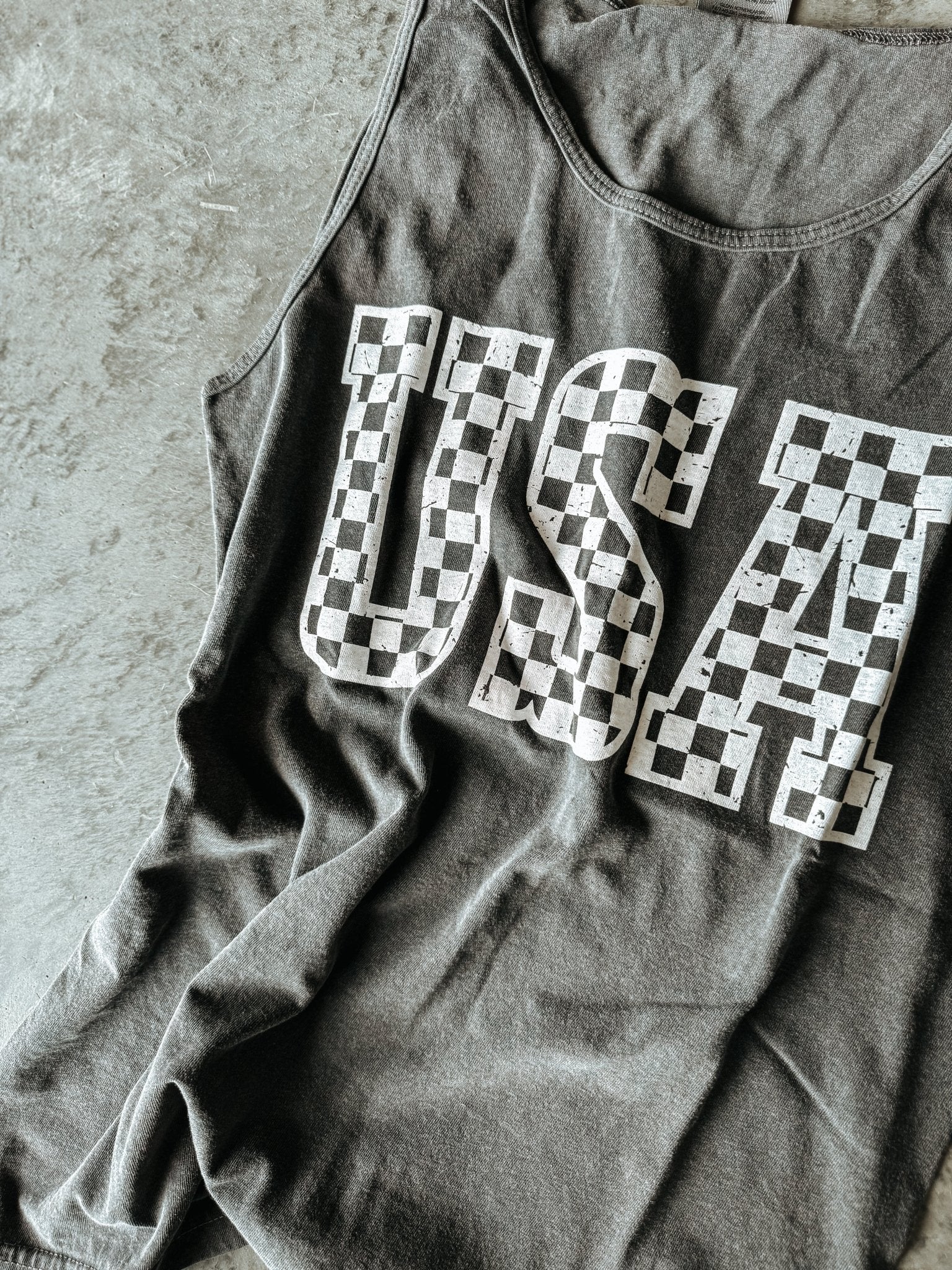 Stay cool and stylish this summer with The Checkered USA Tank! Featuring your favorite classic checked print in a versatile charcoal shade, this tank is a playful must-have for sunny days. Perfect for pairing with shorts or skirts, it keeps you comfortable while adding a fun, trendy touch to your warm-weather wardrobe.