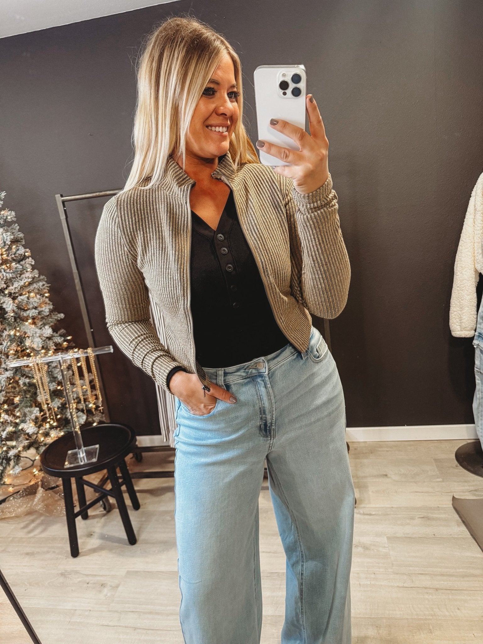 The Croft Knit Mock Neck Zip Up brings effortless style with its chic mocha and black colorway. This fitted knit features a classic mock neck and smooth silver hardware zipper for that polished touch. Perfect for layering or wearing solo, it's your new go-to piece for looking put-together without trying too hard. Cozy meets cool in one irresistible package.