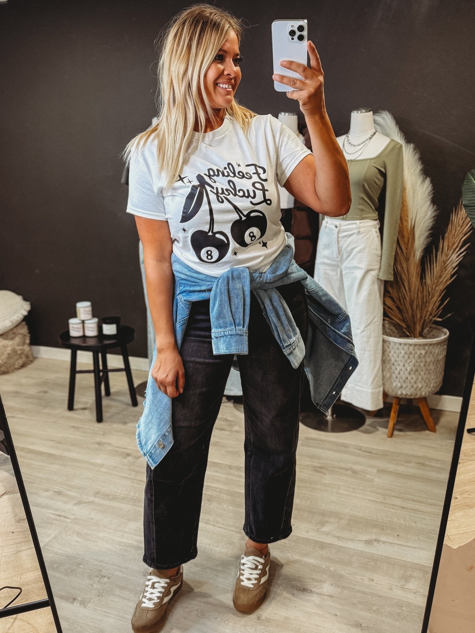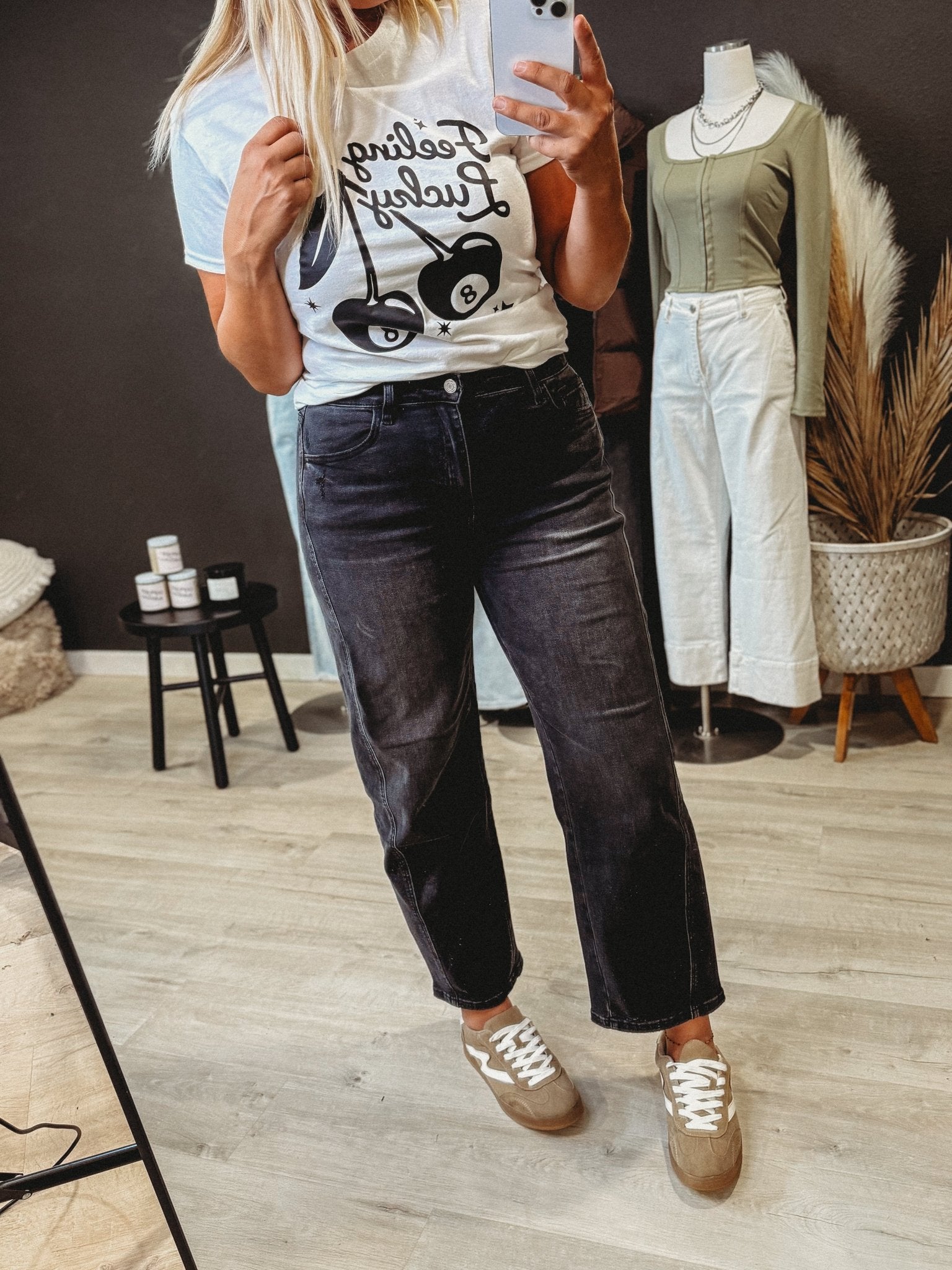 Step up your denim game with The Kate Black Barrel Jeans by Vervet. These high-rise, cropped jeans hug your waist in all the right ways, while their slight barrel cut adds a playful twist to classic black wash denim. With a flattering silhouette and no distressing, they're perfect for effortlessly cool days and nights.