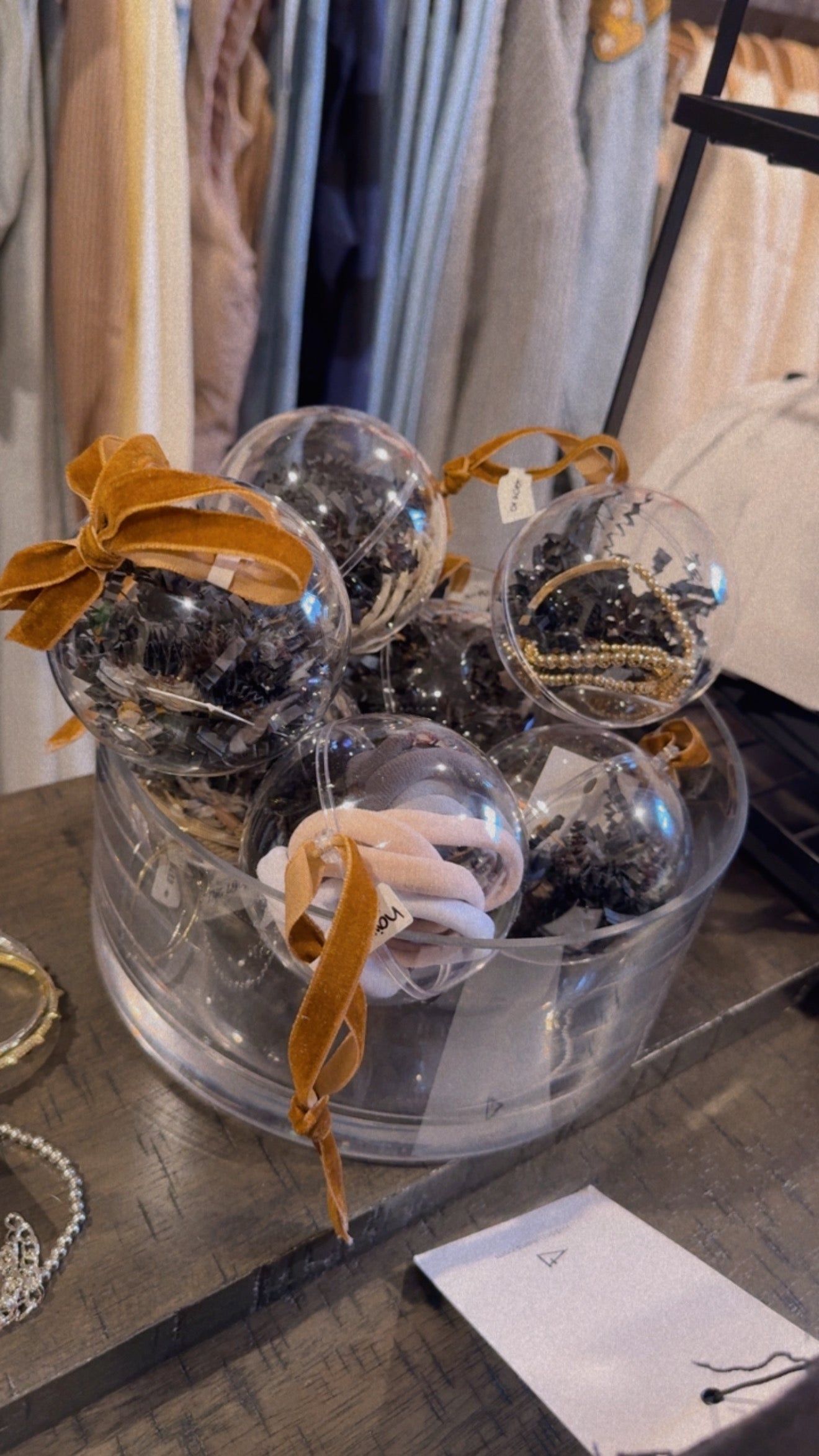 Spin the globe and discover your next favorite accessory! This charming gift ornament opens to reveal a treasure trove of goodies—jewelry, hair ties, and delightful surprises waiting inside. Perfect for the person who has everything, it combines decoration with function. Hang it on your tree, display it year-round, or gift it to someone who loves a little mystery. A playful way to give gifts that keeps on giving.